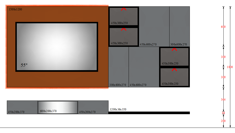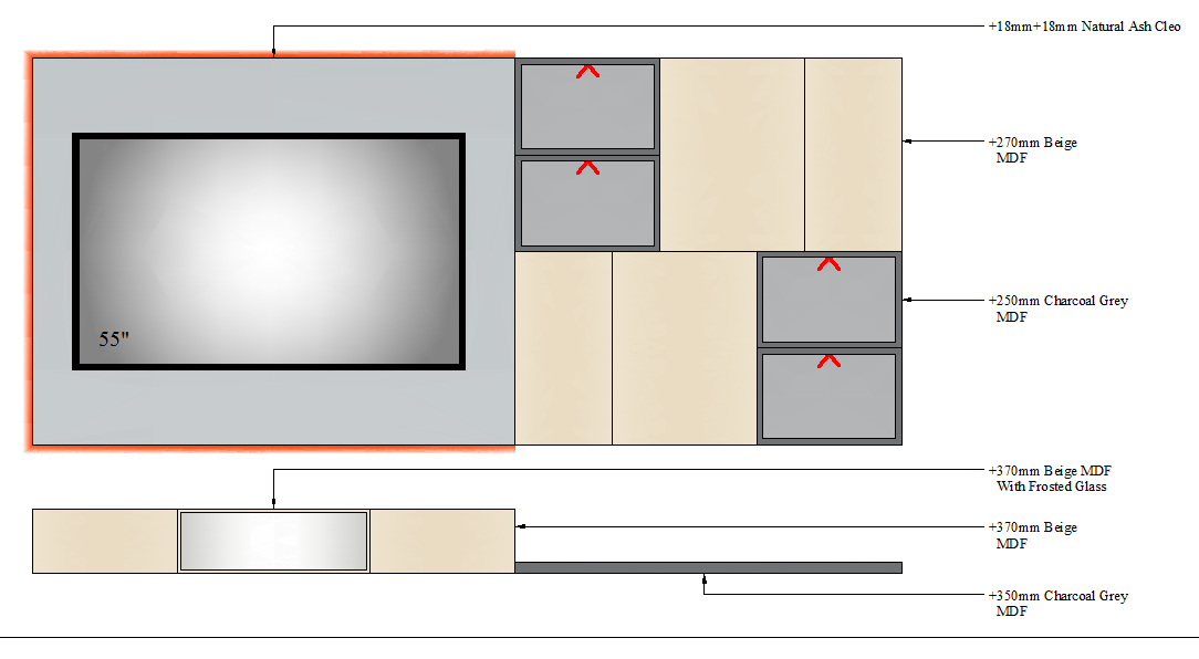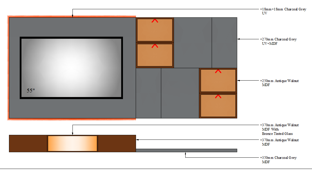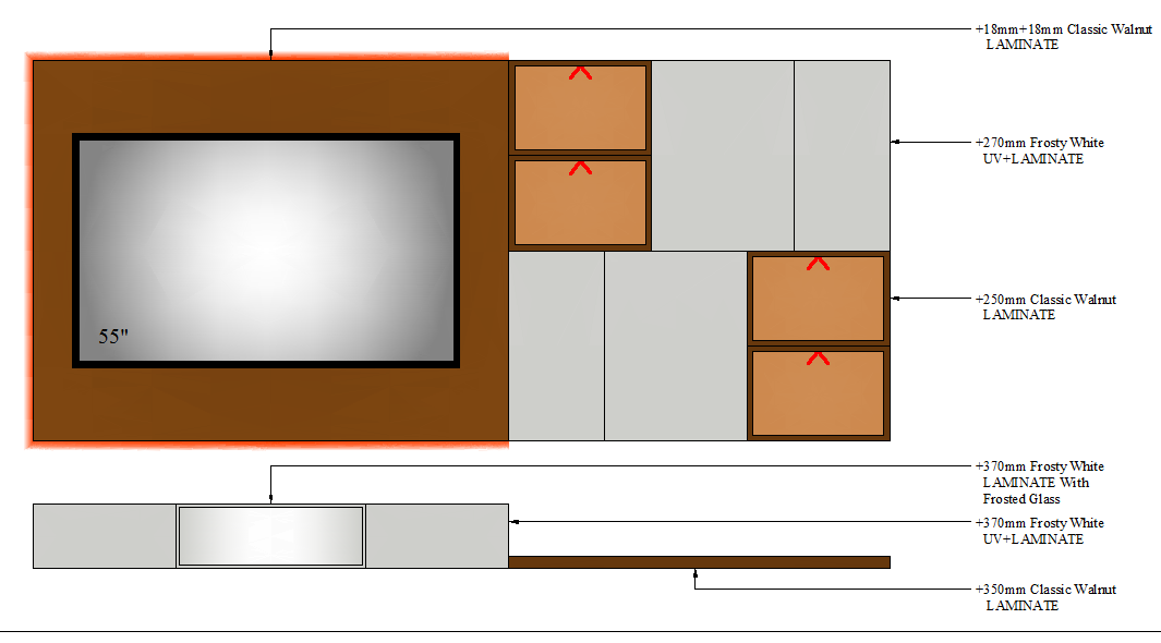 TV UNIT-3 GLASS - 2700mm